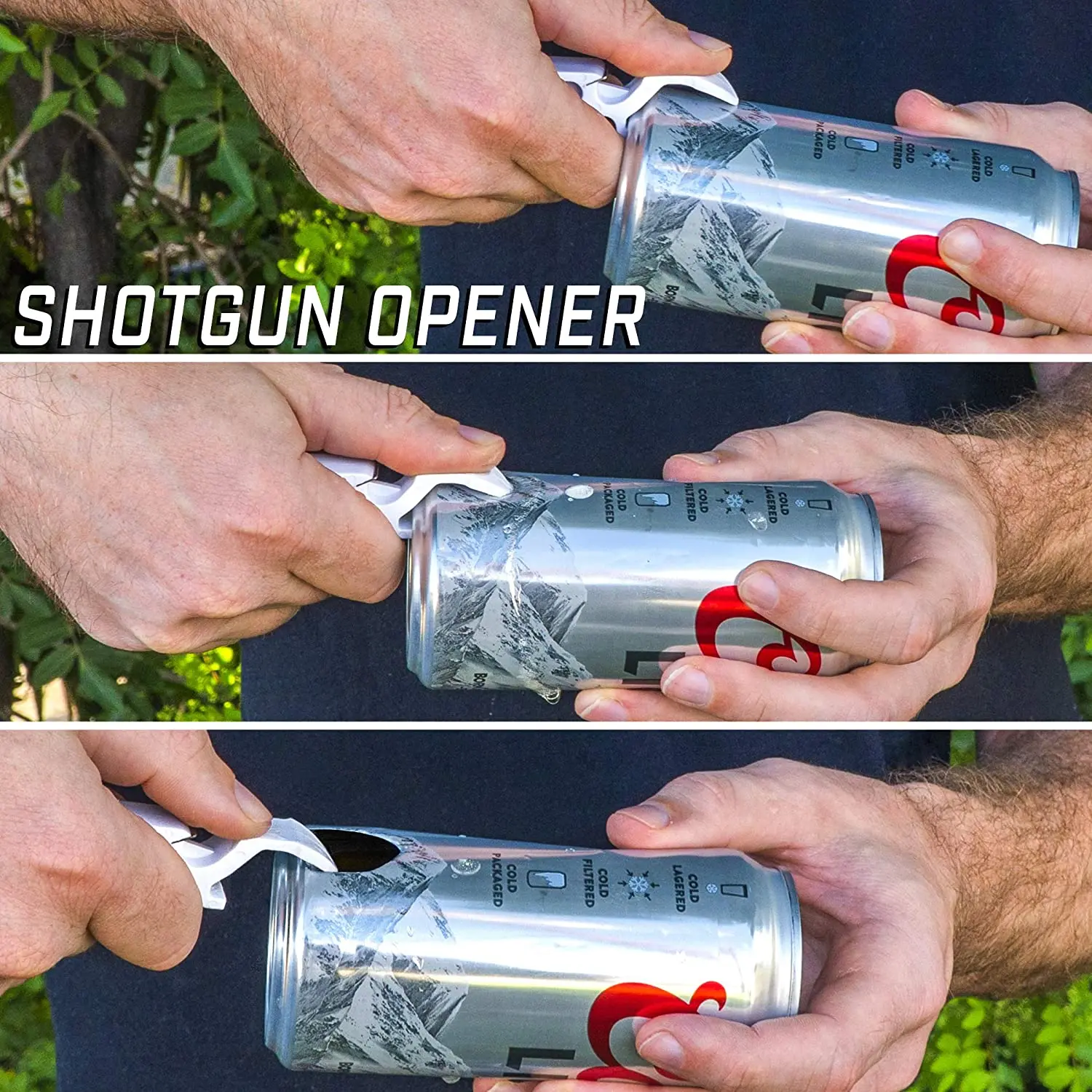 The Shotfun Shotgun is a plastic shotgun to make shotgunning a beer easier cleaner safer and more fun. These tools are made of metal and have a curved edge so they can be used to open bottles and cans.